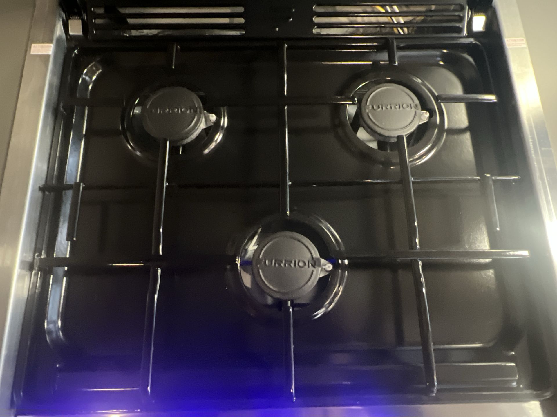 The kitchen is a standout feature, equipped with state-of-the-art appliances, including a three-burner gas stove, a large refrigerator, and a microwave oven. Plenty of storage ensures you're well-prepared for extended journeys, with overhead cabinets and drawers maximizing utility.