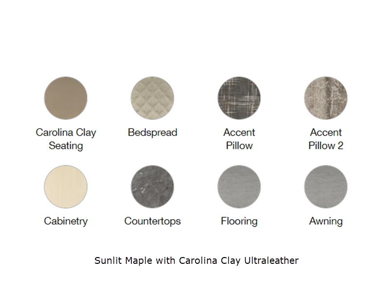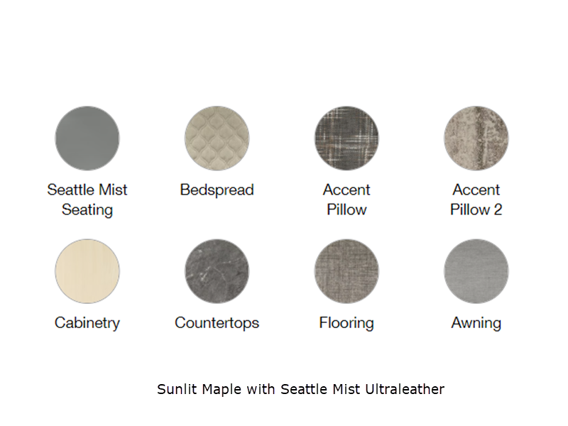 Sleeps 4 Length 28 ft 2 in Ext Width 8 ft 6 in Ext Height 9 ft 7 in Int Height 6 ft 7 in Interior Color Sunlit Maple with Seattle Mist, Sunlit Maple with Carolina Clay, Midnight Flamingo Optional Upgrade Hitch Weight 850 lbs GVWR 7600 lbs Dry Weight 5950 lbs Cargo Capacity 1650 lbs Fresh Water Capacity 39 gals Grey Water Capacity 39 gals Black Water Capacity 39 gals Tire Size ST225/75R15 Furnace BTU 30000 btu Available Beds RV Queen Refrigerator Type 12V Electric w/Freezer Refrigerator Size 8 cu ft Cooktop Burners 3 Number of Awnings 1 LP Tank Capacity 30 lbs Water Heater Type Tankless On Demand LP AC BTU 15000 btu TV Info LR 27" 12V DC Smart TV, BR 24" 12V DC Smart TV Awning Info Manual ZipDee with Sunbrella Fabric and LED Dimmable Light Axle Count 2 Number of LP Tanks 2 Shower Type Shower w/Seat Electrical Service 30 amp Similar Floorplans