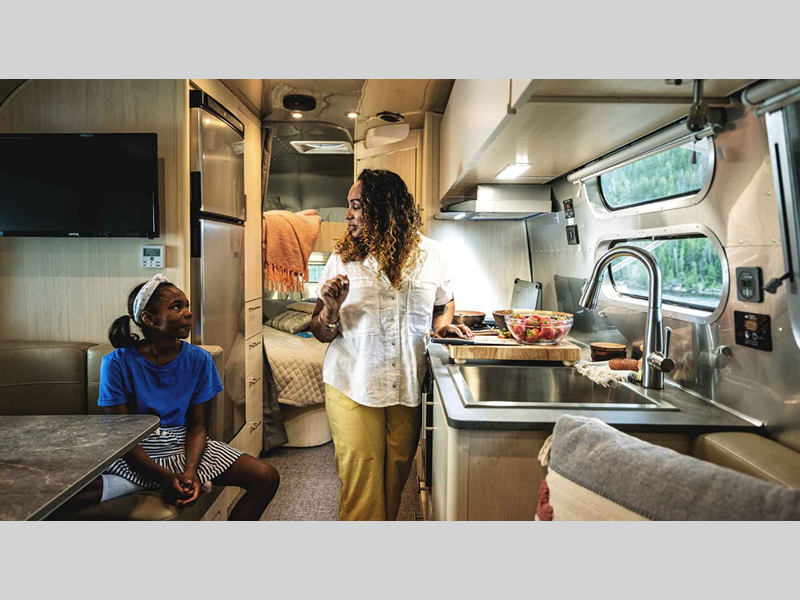 Bring the comfort zone right along with you in the Airstream Flying Cloud travel trailers!